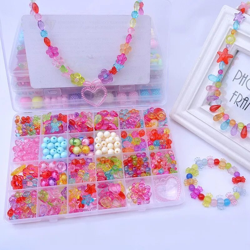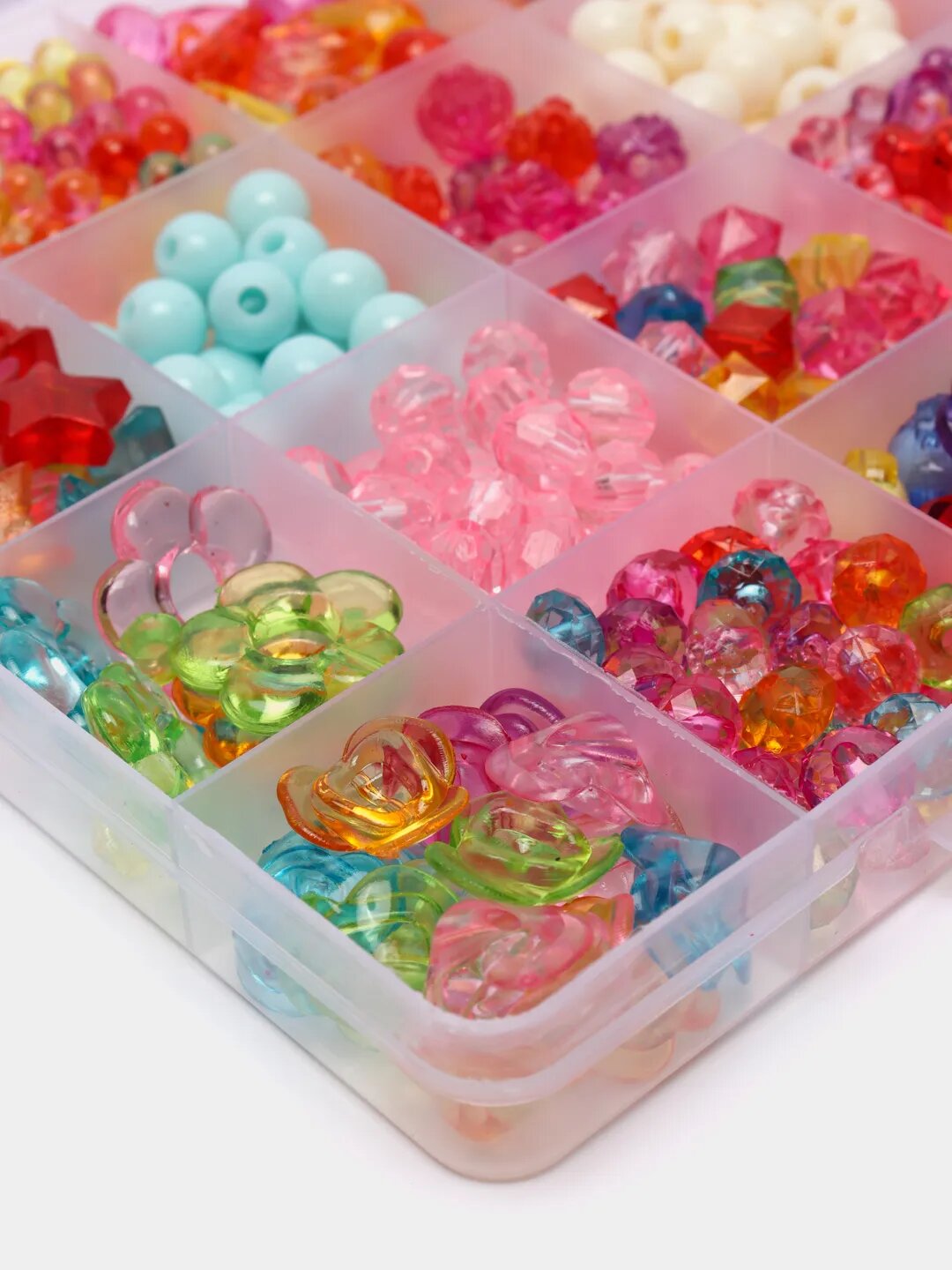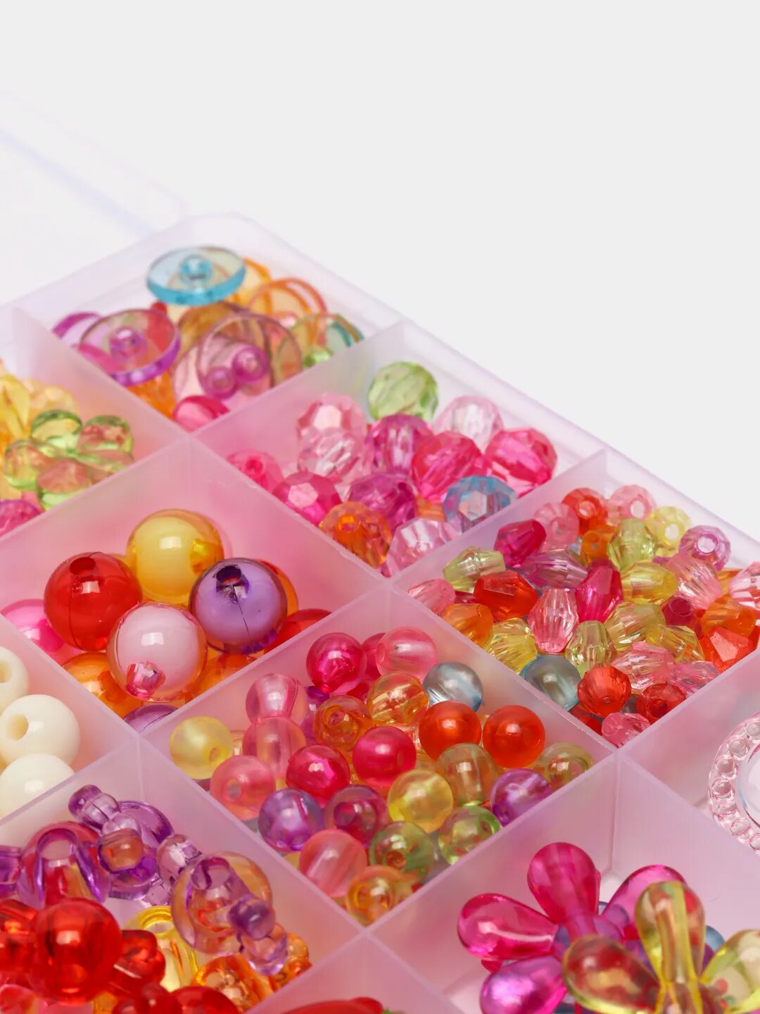 Набор для создания украшений включает 24 вида бусин, которые отличаются формой и оттенком. Разнообразие дизайна позволит с легкостью импровизировать и развивать фантазию, создавать своими руками браслет, ожерелье, кольцо, ободок, серьги и другое. Детский набор для творчества способствует развитию логического мышления, мелкой моторики рук. Аксессуары хранятся в удобной пластиковой коробке, которую удобно брать с собой в дорогу, на отдых, пикник, творческие мероприятия. Пластиковая коробка защитит изделия от внешних негативных факторов, в том числе намокания. Также набор можно купить для увлекательных занятий дома, плетение. В наборе для создания украшений около 550 элементов: звезды, бабочки, фрукты, цветы, шарики, бантики, буквы, кристаллы, зайчики, рыбки, сердце, кристаллы,камни, смайлики, которые удобно распределены в боксе.Все изделия, входящие в комплект, имеют правильную форму, выполнены из безопасных материалов и окрашены в яркие цвета, благоприятно воздействующие на эмоциональный фон девочек. Набор для рукоделия - прекрасный вариант подарка для девочки, подруги на праздник, на день рождения.