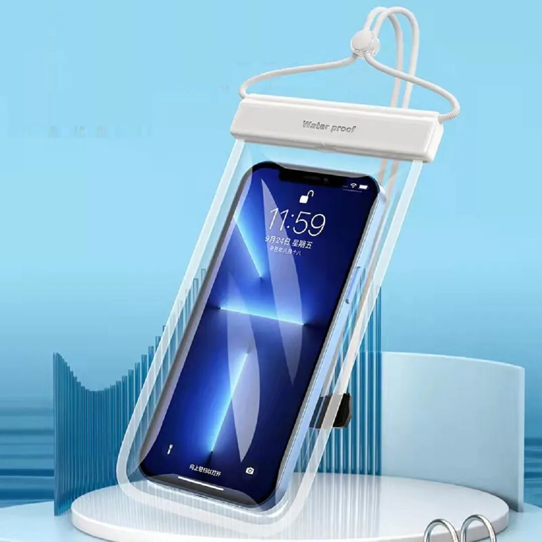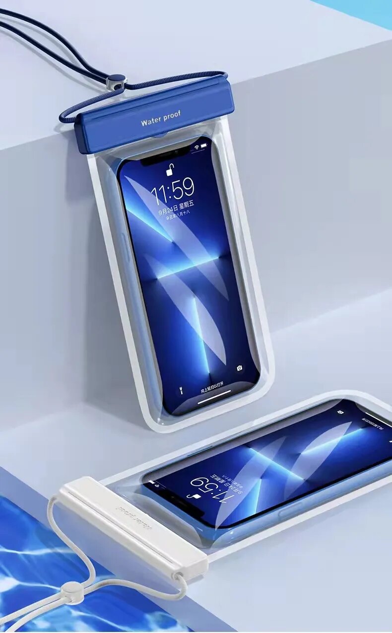 Прозрачный водонепроницаемый чехол-сумка для защиты мобильных телефонов от влаги, соли, песка, грязи, снега и дождя. Любители активного образа жизни используют герметичный чехол с водонепроницаемостью до 30 метров для подводных съёмок, берут с собой на пляж, в горы и походы. Регулируемый шнурок фиксируется на шее, освободив руки и карманы. С этим защитным аксессуаром сможете надёжно хранить смартфон, деньги и кредитные карты в любую погоду, принимать звонки, писать смс, фотографировать не вынимая телефон из чехла.