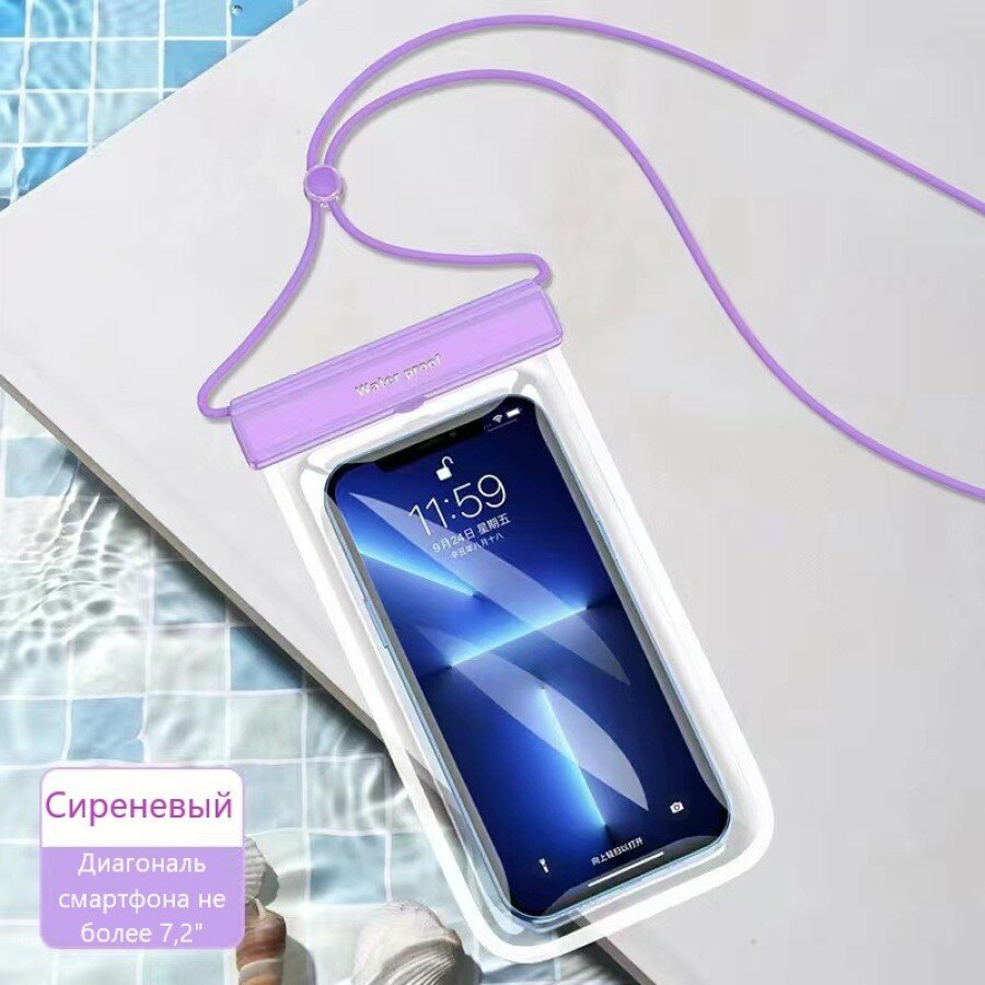 Чехол для телефона водонепроницаемый бассейн море пляж, сиреневый