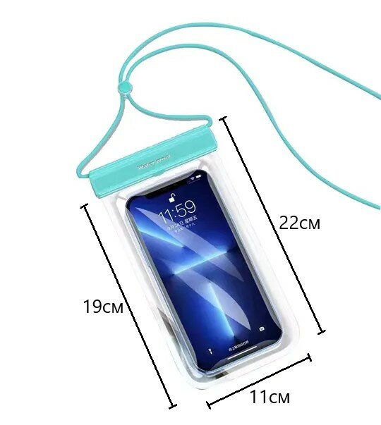 Прозрачный водонепроницаемый чехол-сумка для защиты мобильных телефонов от влаги, соли, песка, грязи, снега и дождя. Любители активного образа жизни используют герметичный чехол с водонепроницаемостью до 30 метров для подводных съёмок, берут с собой на пляж, в горы и походы. Регулируемый шнурок фиксируется на шее, освободив руки и карманы. С этим защитным аксессуаром сможете надёжно хранить смартфон, деньги и кредитные карты в любую погоду, принимать звонки, писать смс, фотографировать не вынимая телефон из чехла.