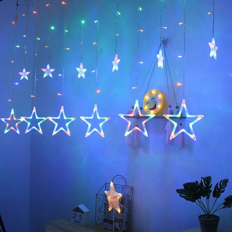 Гирлянда новогодняя звезды на окно 3 м, штора, Разноцветный