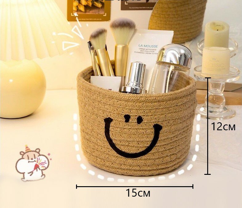Вязаные корзинки для хранения изготовлены из хлопкового шнура - экологичного и безопасного материала. Маленькая корзинка предназначена для создания порядка и уюта в доме или на даче, в детской для хранения игрушек и канцтоваров, в ванной для косметики и мелочей. Отлично подойдет в качестве подарка маме или использовать как готовую подарочную упаковку в которую можно положить основной подарок. Органайзер для мелочей будет отличным украшением для спальни и в прихожей и для ванной. Корзинка хорошо держит форму, имеет плотные ровные стенки. Прекрасное украшение дома для тех, кто ценит уют, детали и умное хранение. Вы можете использовать корзину для конфет, для фруктов, для хлеба, как корзину сервировочную для пасхи, для рукоделия, для лекарств. Вы с легкостью можете организовать хранение в ванной. Также, органайзер плетеный поможет спрятать провода от зарядок и убрать визуальный шум на комоде в спальне.