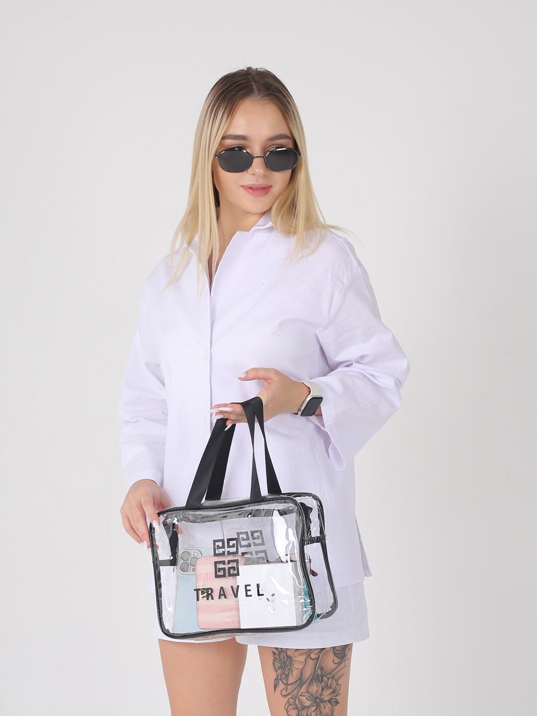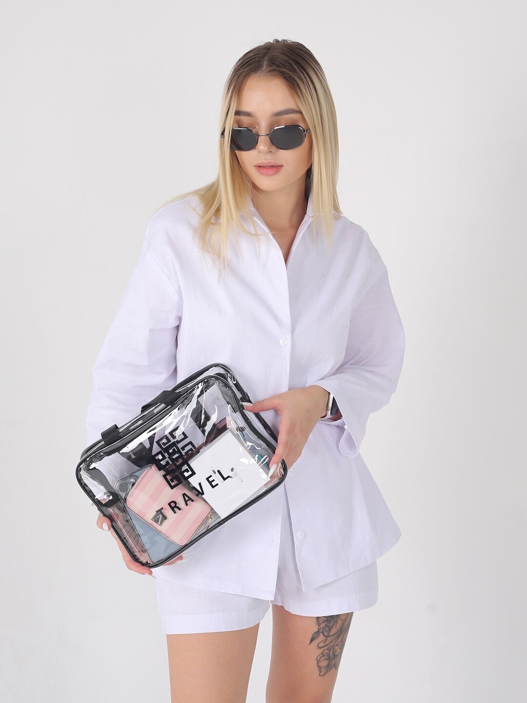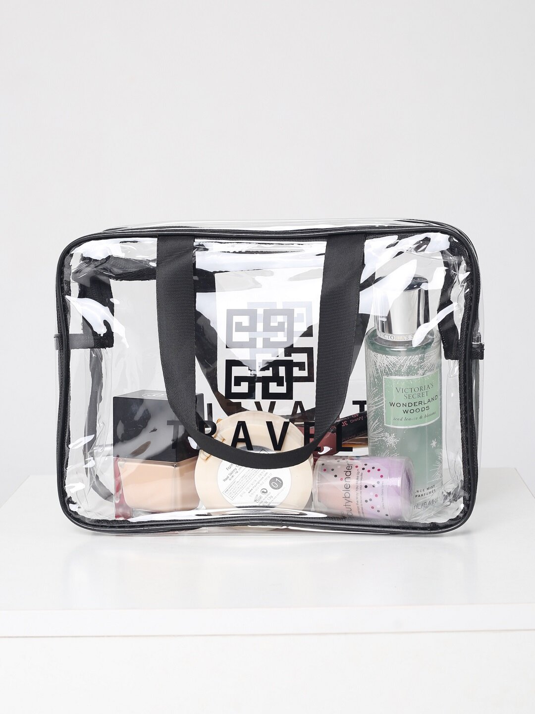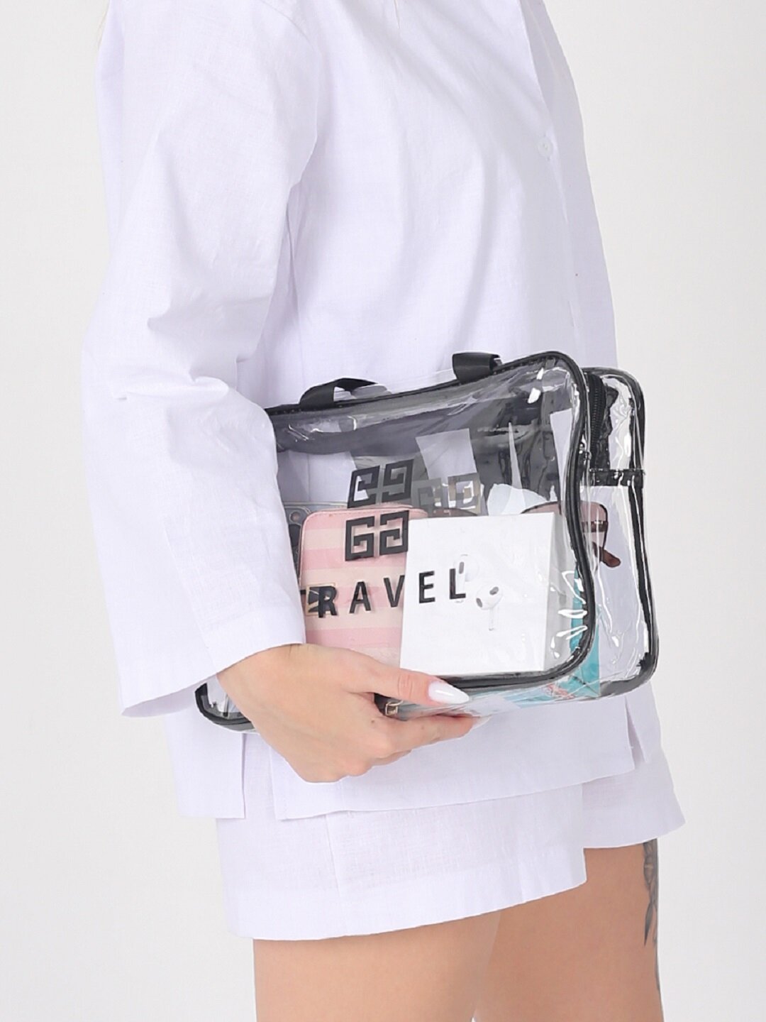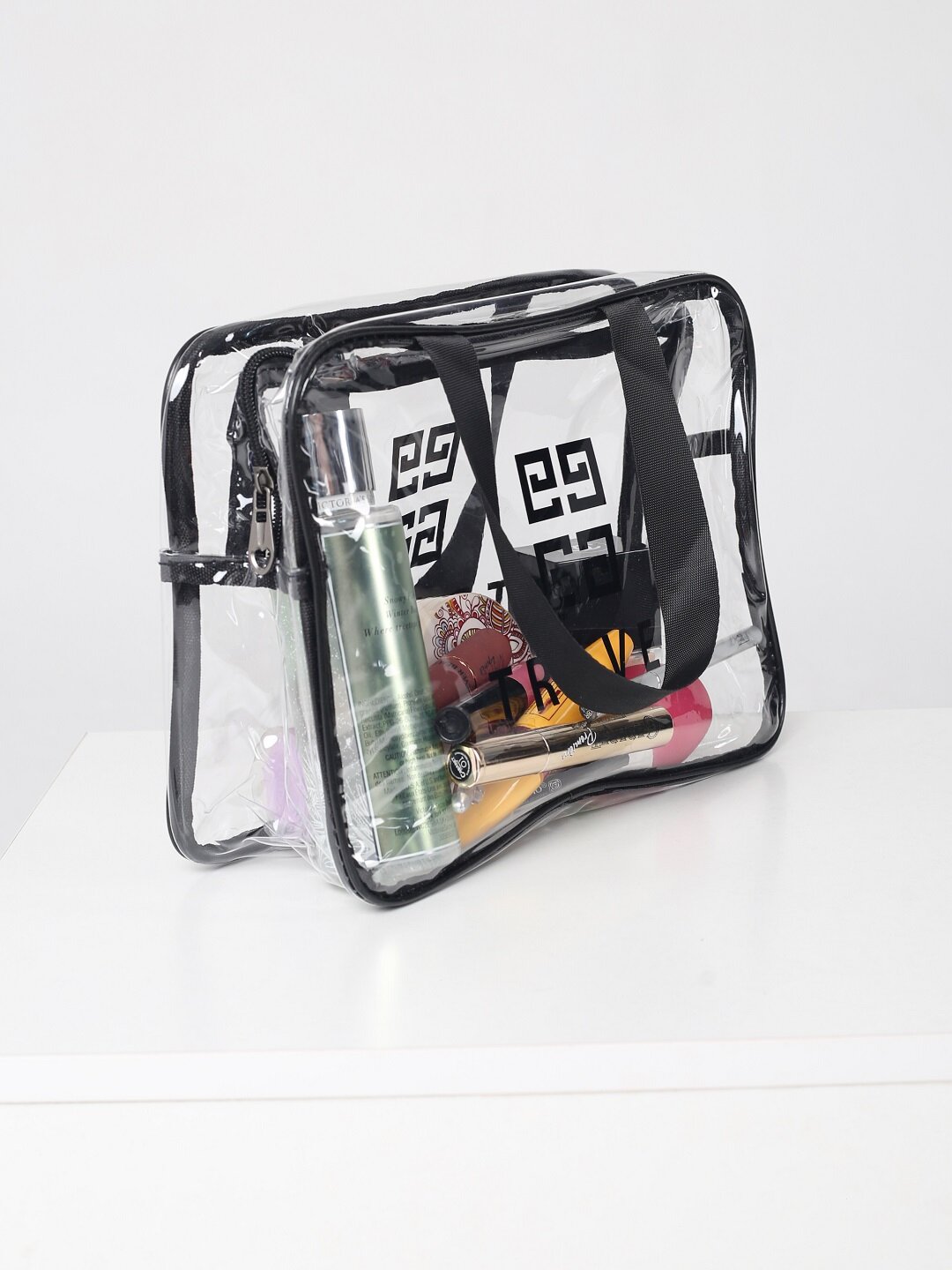 Женская, мужская прозрачная косметичка Travel на молнии и гладкой ручкой. Сумка с ручками герметична, непромокаемая и защищена от попадания влаги. Косметичка прозрачная с черного цвета окантовкой, замком и ручкой, что придаёт ей более изящный вид. Возьмите с собой в дорогу, путешествие или в поездку. Сумочку можно взять в роддом, больницу, душ, бассейн, баню, сауну и для пляжа. Идеальный набор в зал, на фитнес, спорт. Косметичку пенал применяют также для школьных принадлежностей, канцелярии. Девушке удобно взять ее в институт или в гости. Косметички имеют стильный вид, подойдут и для мужчин. В нее с лёгкостью поместится косметика, личные вещи, средства гигиены и одежда.