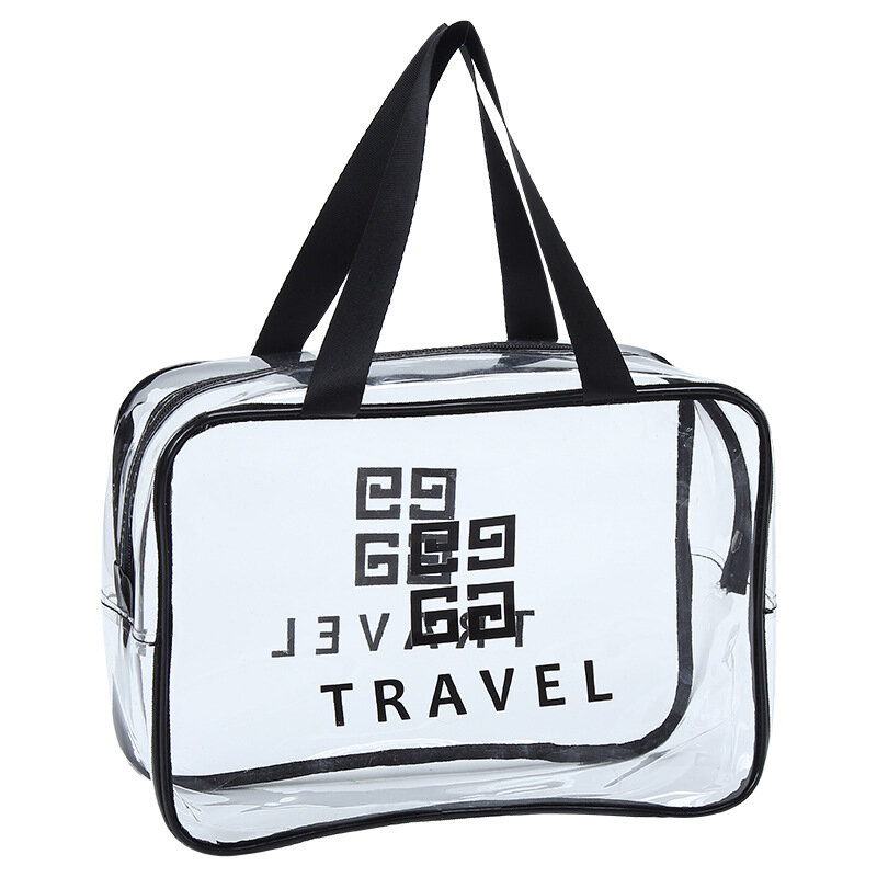 Косметичка водонепроницаемая ПВХ на молнии сумочка с ручкой TRAVEL, прозрачная 29,5*11*21см