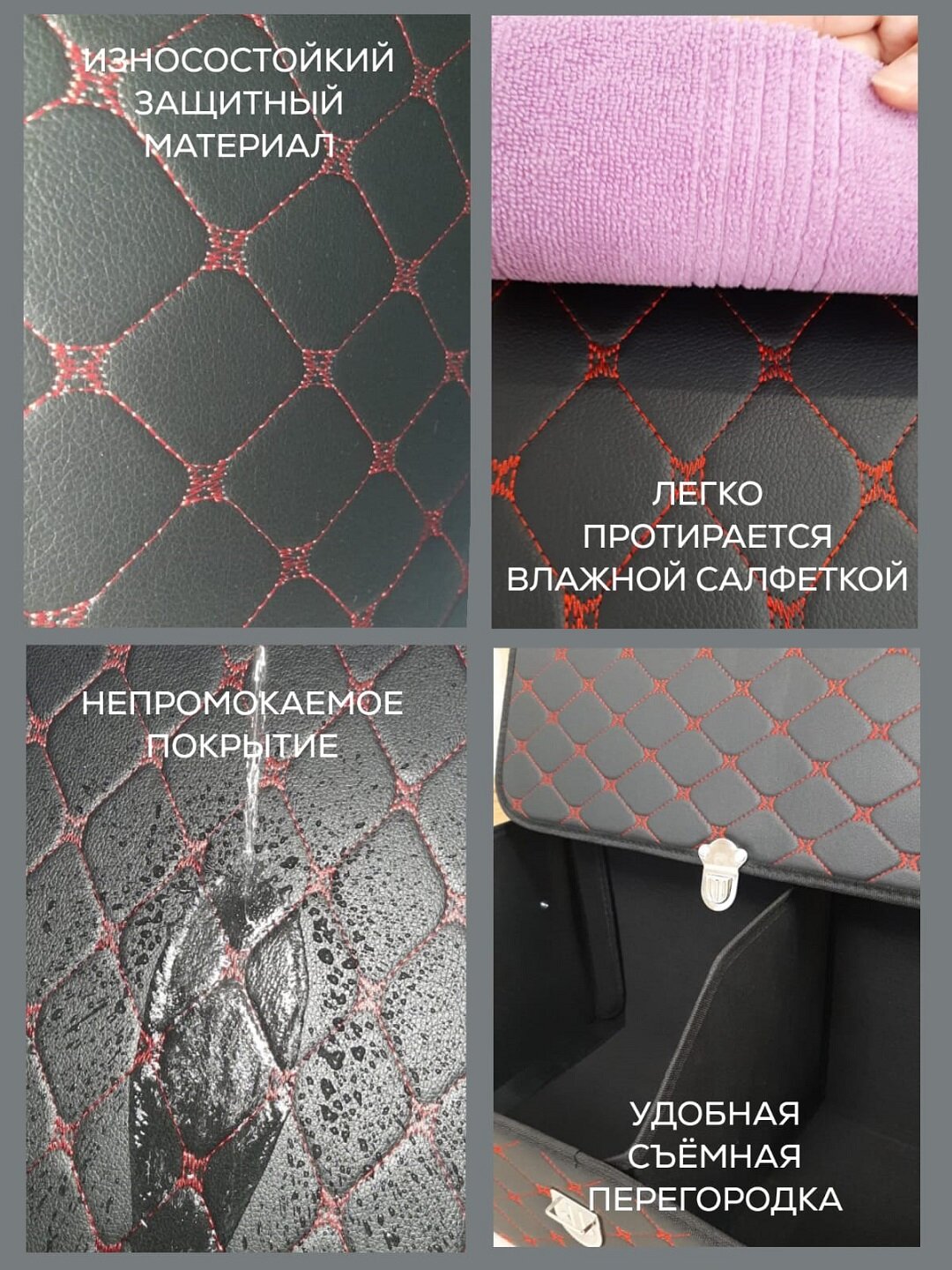 Органайзер автомобильный в багажник автомобиля. Вместительная сумка гарантирует чистоту и порядок в багажнике автомобиля. Контейнер для хранения авто аксессуаров заменяет подарочный бокс в который можно поместить подарки для мужчин. Удобный ящик для инструментов в него поместятся автоаксессуары, огнетушитель, аптечка, авто устройства и др автотовары. Кофр для хранения вещей в машине входит в основной набор автомобилиста. Органайзер идеальный подарок мужчине автолюбителю: папе, любимому мужу или парню, брату, коллеге на день рождения, годовщину или юбилей. Лучшая авто сумка мужская для инструмента, Ваш мужчина будет в восторге от подарка, который упростит уход за автомобилем. Автосумка лучше чем чехлы, коврики, сетка для багажника авто. Лучший автотовар из экокожи для автомобиля с боковыми ручками.