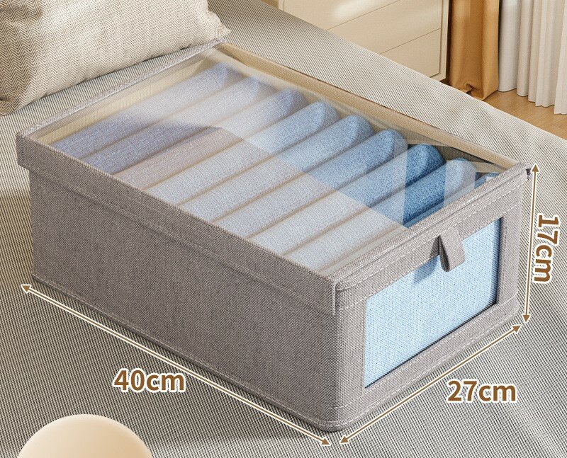 Органайзер для хранения одежды полотенец белья с крышкой 40х27х17см, серый