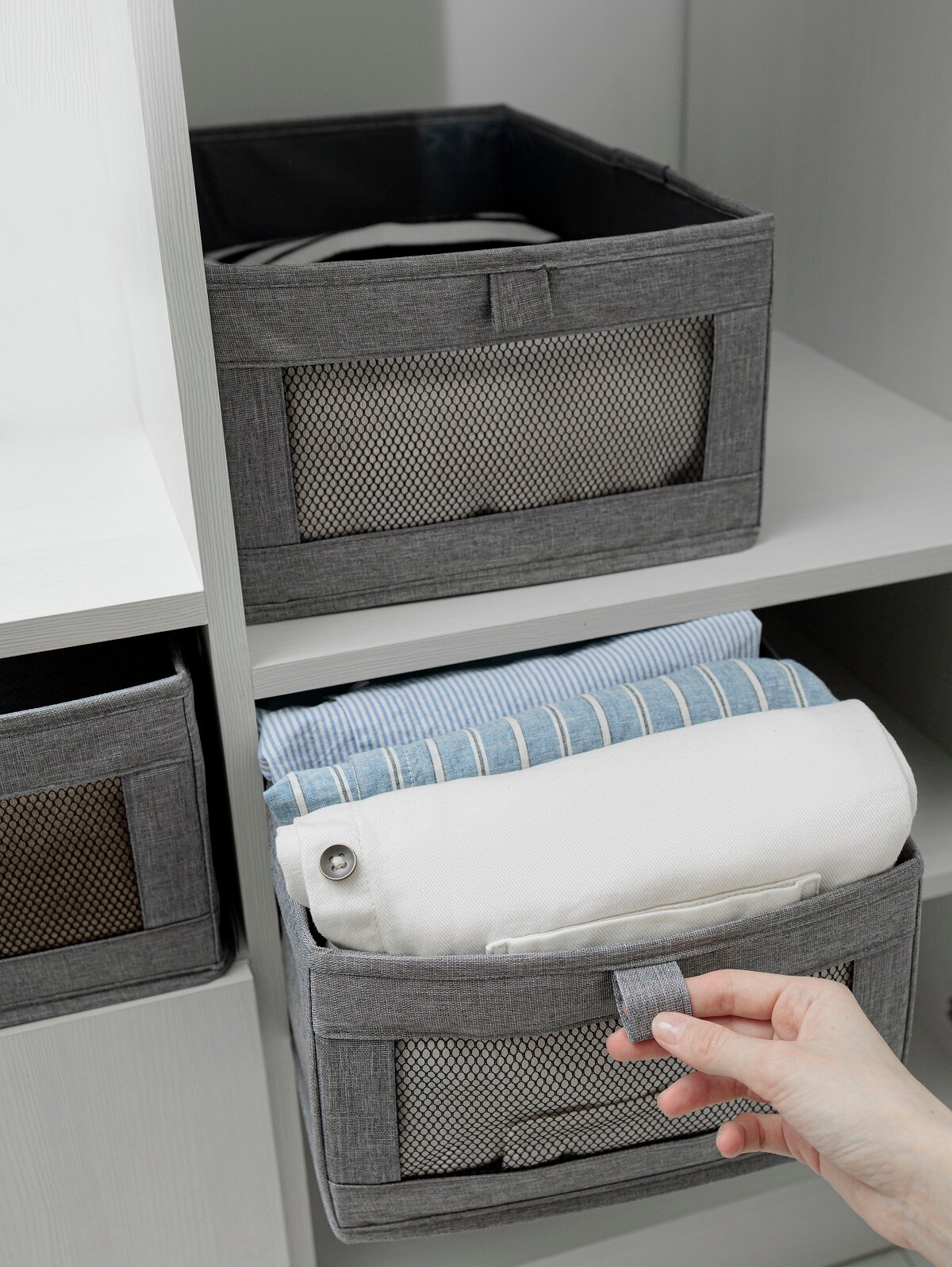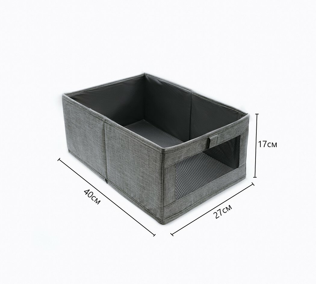 Стильный, современный и удобный органайзер системы грамотной организации пространства и порядка в доме. Размер 40х27х17 см. Качественное изготовление и современный стиль преобразят ваше пространство в шкафу, комнате, помещении. Данные корзинки на сегодня показали свою востребованность и полюбились многими домохозяйками за их оригинальность, удобство, практичность и современный стиль. Органайзер для хранения имеет универсальный дизайн, подойдет для стандартного стеллажа и для хранения вещей на полке в шкафу. Многофункциональный короб контейнер для хранения легко складывается и компактно хранится, когда он не используется по назначению, а при необходимости легко собирается в прочную, вместительную корзину. Тканевый короб для хранения вещей представлен в спокойном лаконичном тоне, имеет ручку и прозрачное окошко, вы легко найдете нужную вещь не вытаскивая для этого все. Хорошо держит форму и не деформируется благодаря плотным стенкам и жесткому дну. Используйте контейнеры без крышки под документы, украшения, нужные мелочи, для хранения нижнего белья, носков, женской и детской одежды и обуви. В раскладных коробочках хранят косметику и украшения, кухонные принадлежности, предметы и аксессуары. В тканевом кофре хорошо хранятся комплекты постельного белья и полотенца. Можно использовать как напольный ящик для хранения игрушек, деталей конструктора, книг, предметов рукоделия, для хранения обуви. Компактное текстильное изделие займет свое место на стеллаже в прихожей, гардеробной, на кухне и балконе. Очень здорово подходит для вертикального хранения трикотажных свитеров и брюк. Универсальный дизайн позволит организовать стильное и удобное хранение в современном интерьере. Стильный дизайн впишется в любой современный интерьер и поможет поддерживать порядок в доме и избавиться от визуального шума от лежащих на виду вещей.