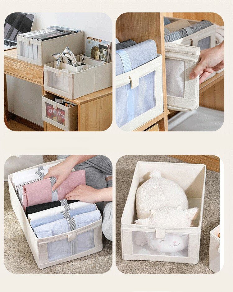 Стильный, современный и удобный органайзер системы грамотной организации пространства и порядка в доме. Качественное изготовление и современный стиль преобразят ваше пространство в шкафу, комнате, помещении. Данные корзинки на сегодня показали свою востребованность и полюбились многими домохозяйками за их оригинальность, удобство, практичность и современный стиль. Органайзер для хранения имеет универсальный дизайн, подойдет для стандартного стеллажа (например марки икеа и др.) и для хранения вещей на полке в шкафу. Многофункциональный короб контейнер для хранения легко складывается и компактно хранится, когда он не используется по назначению, а при необходимости легко собирается в прочную, вместительную корзину. Тканевый короб для хранения вещей представлен в спокойном лаконичном тоне, имеет ручку и прозрачное окошко, вы легко найдете нужную вещь не вытаскивая для этого все. Хорошо держит форму и не деформируется благодаря плотным стенкам и жесткому дну. Используйте контейнеры без крышки под документы, украшения, нужные мелочи, для хранения нижнего белья, носков, женской и детской одежды и обуви. В раскладных коробочках хранят косметику и украшения, кухонные принадлежности, предметы и аксессуары. В тканевом кофре хорошо хранятся комплекты постельного белья и полотенца. Можно использовать как напольный ящик для хранения игрушек, деталей конструктора, книг, предметов рукоделия, для хранения обуви. Компактное текстильное изделие займет свое место на стеллаже в прихожей, гардеробной, на кухне и балконе. Очень здорово подходит для вертикального хранения трикотажных свитеров и брюк. Универсальный дизайн позволит организовать стильное и удобное хранение в современном интерьере. Стильный дизайн впишется в любой современный интерьер и поможет поддерживать порядок в доме и избавиться от визуального шума от лежащих на виду вещей.