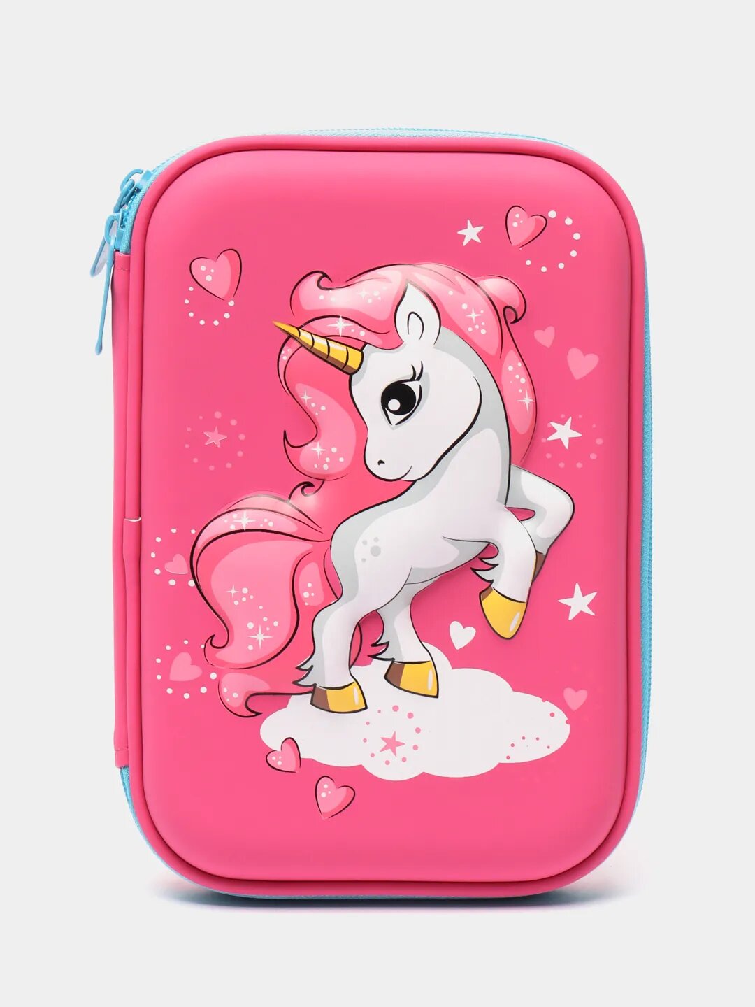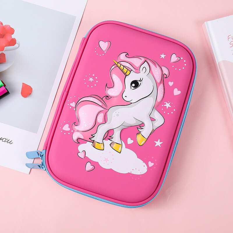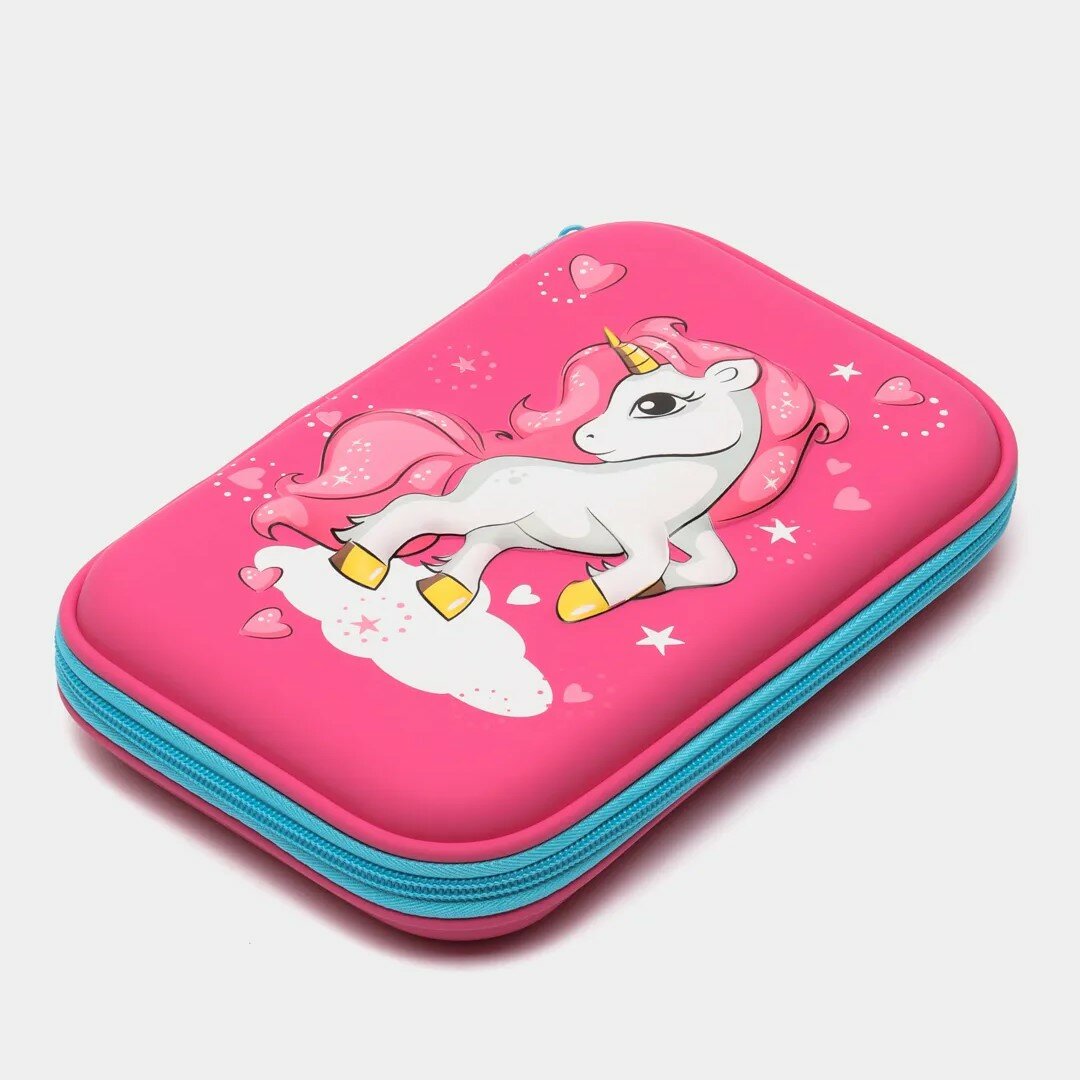 Пенал Единорог школьный в школу для девочек с 3д рисунком на молнии, розовый