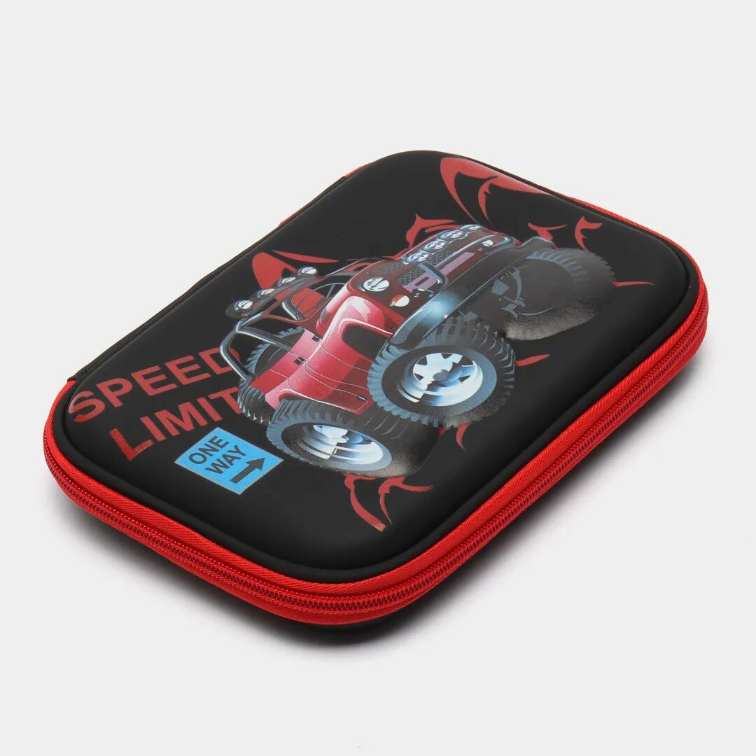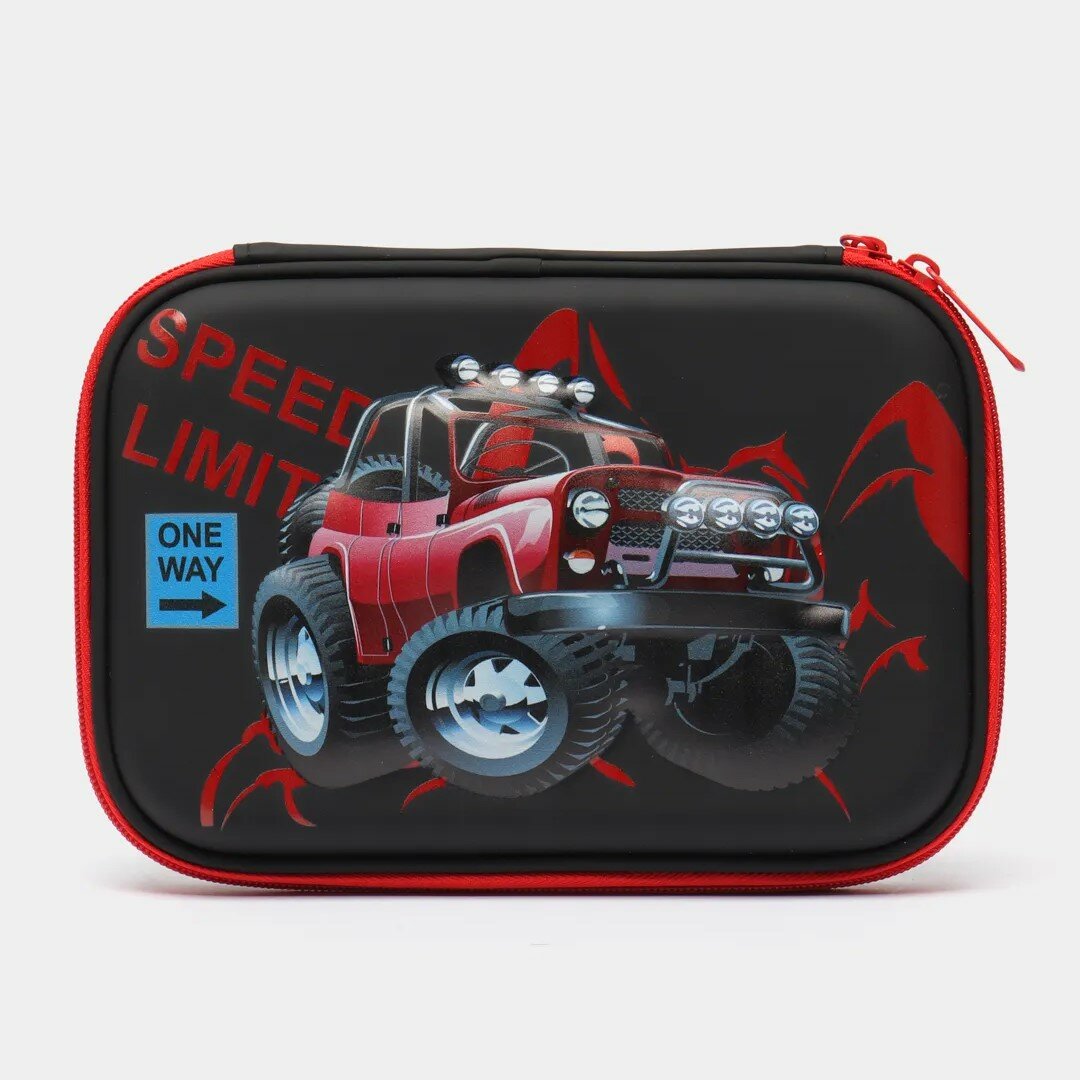 Пенал Машина школьный в школу для мальчиков с 3д рисунком на молнии, черный