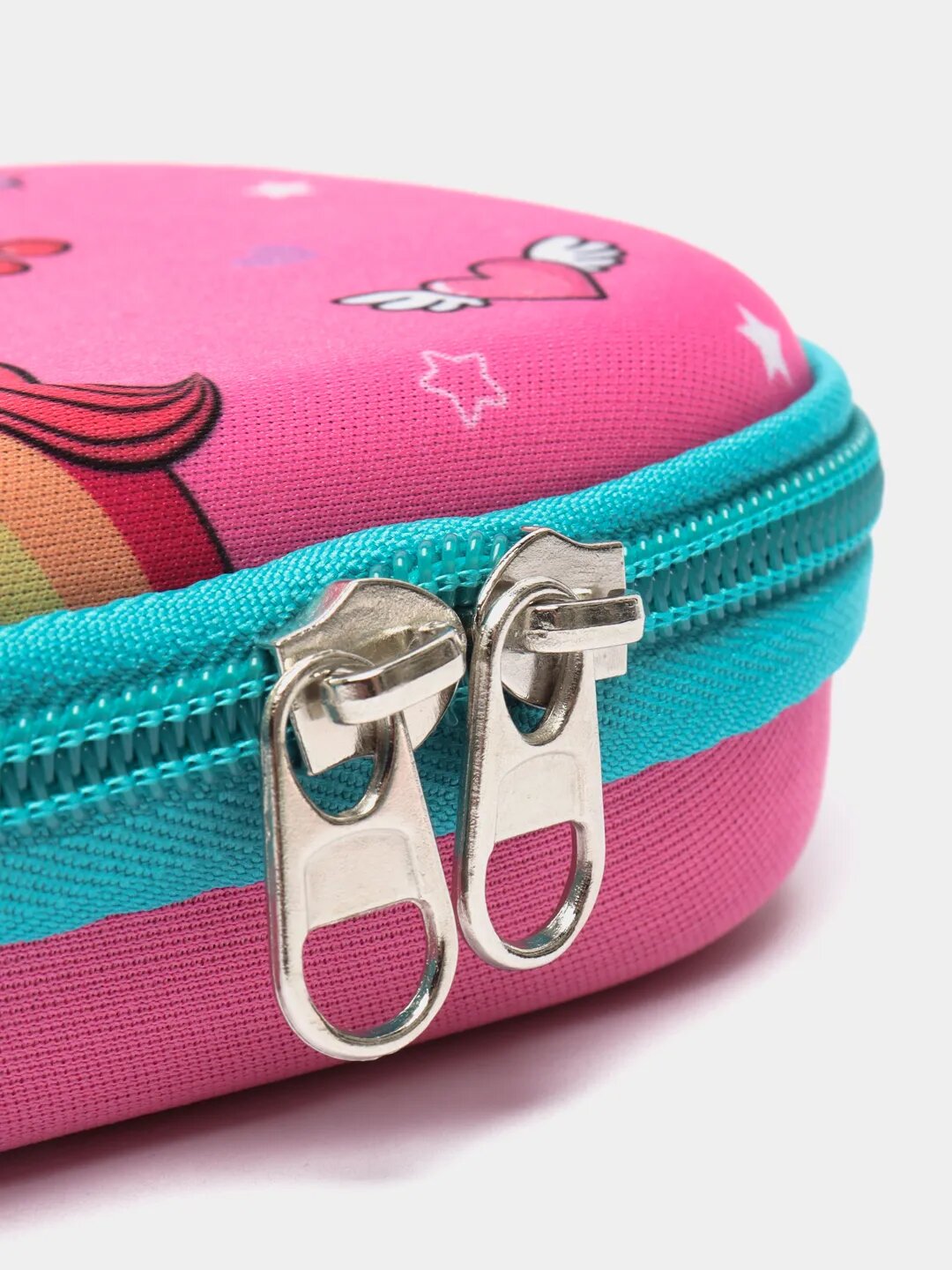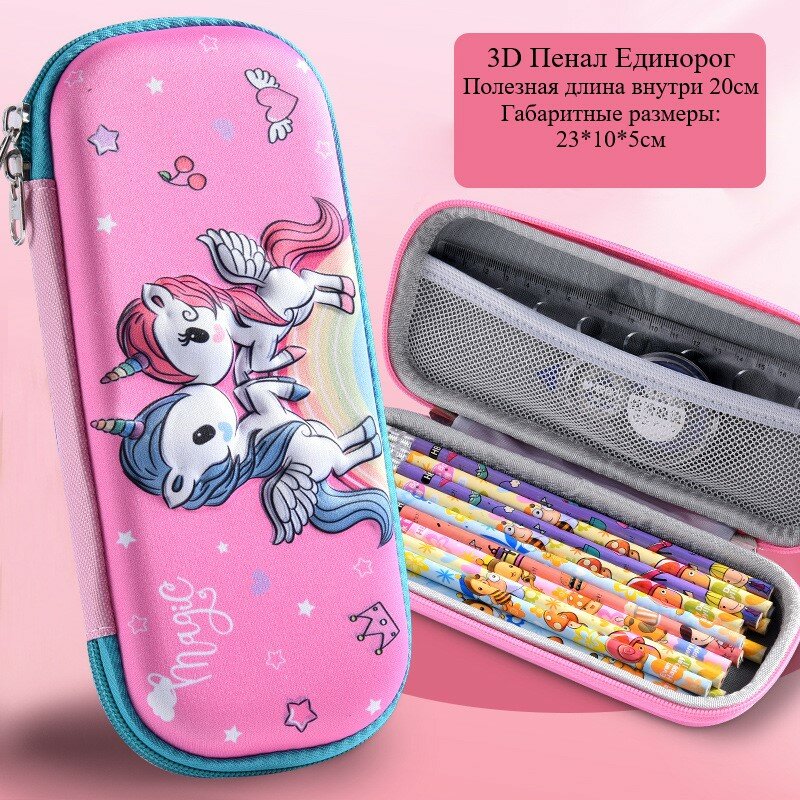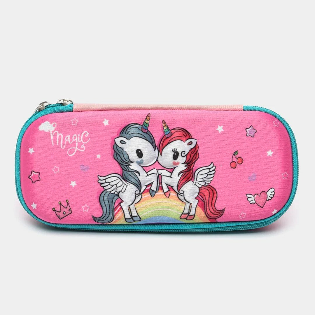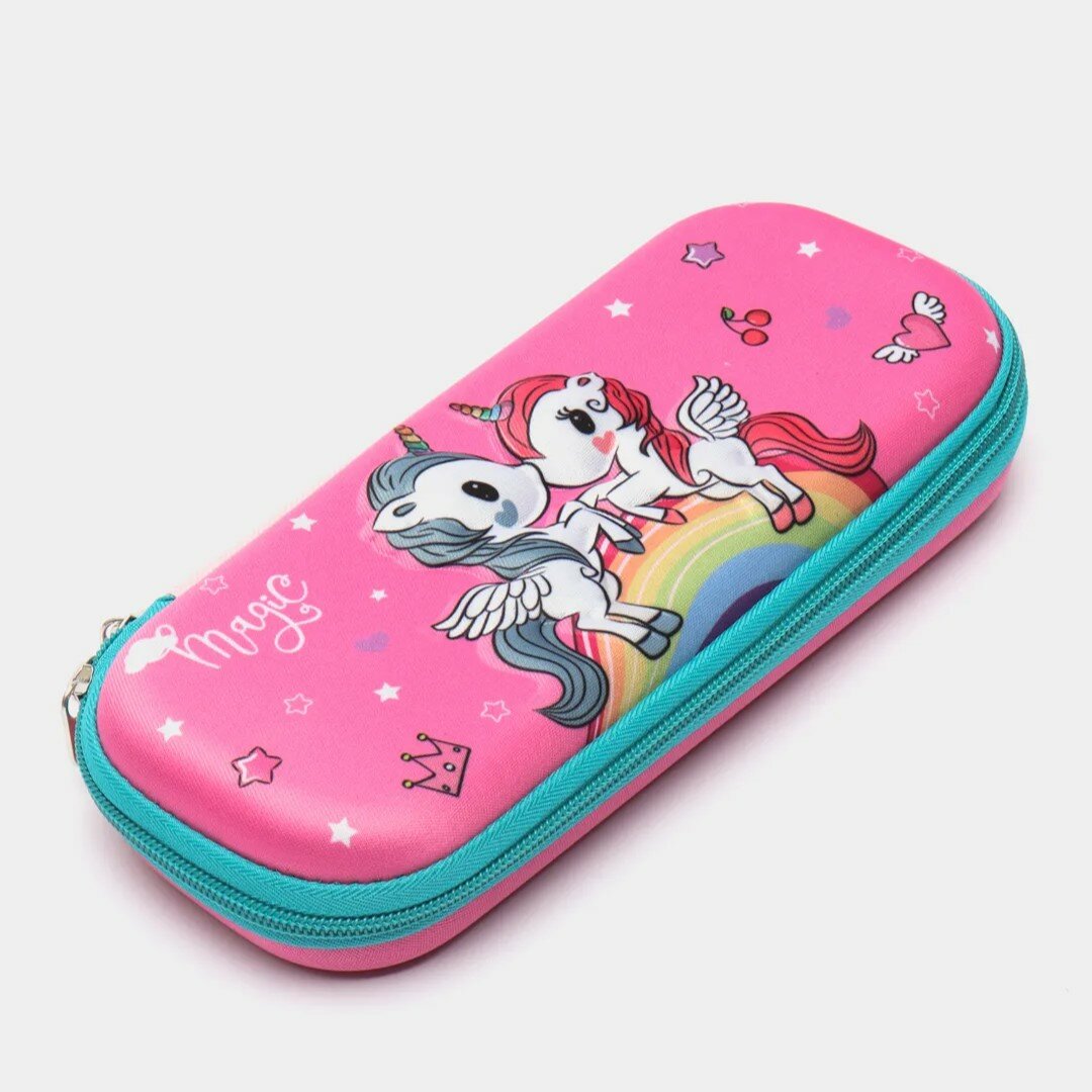 Пенал школьный для девочек мальчиков с 3д рисунком на молнии Единорог, розовый