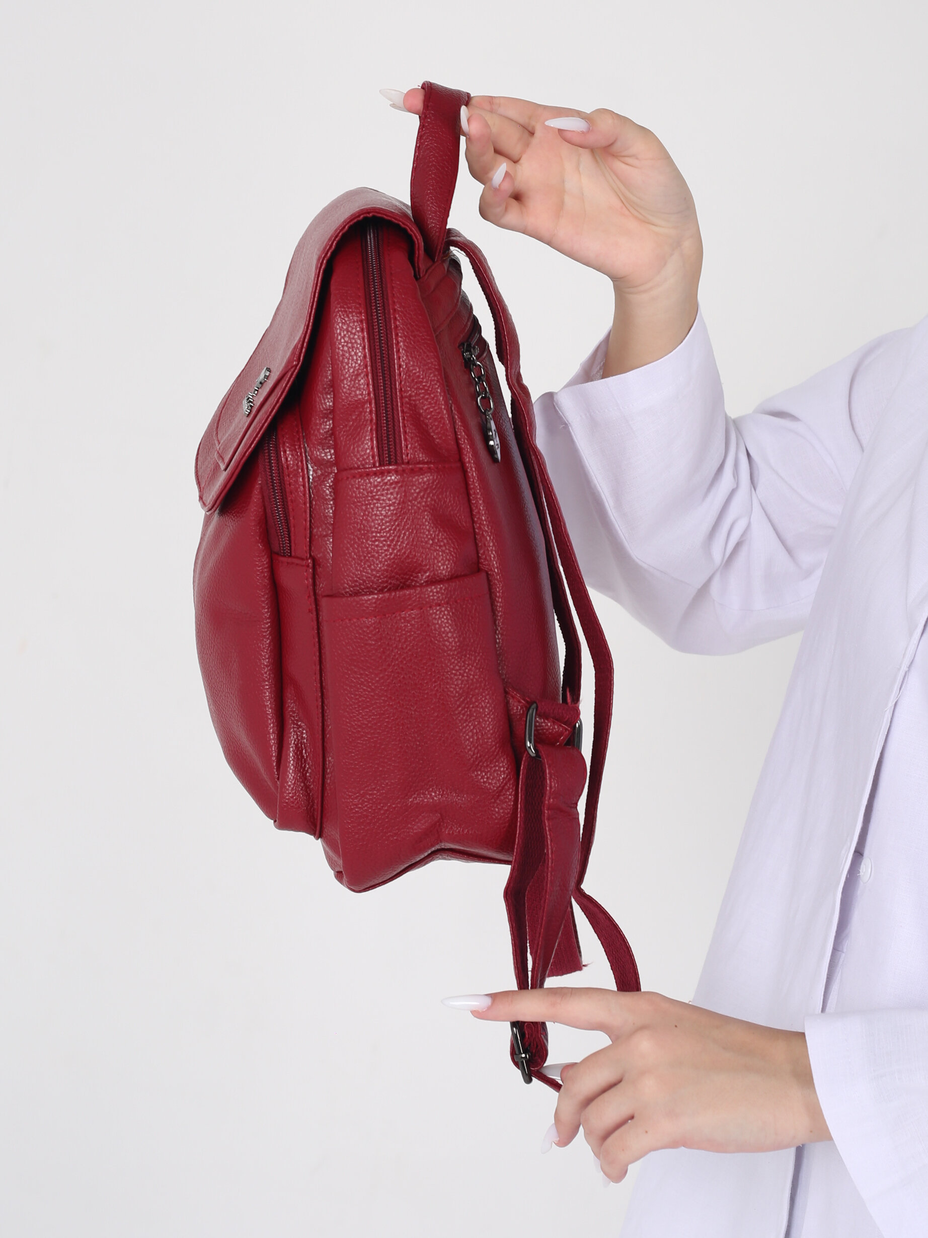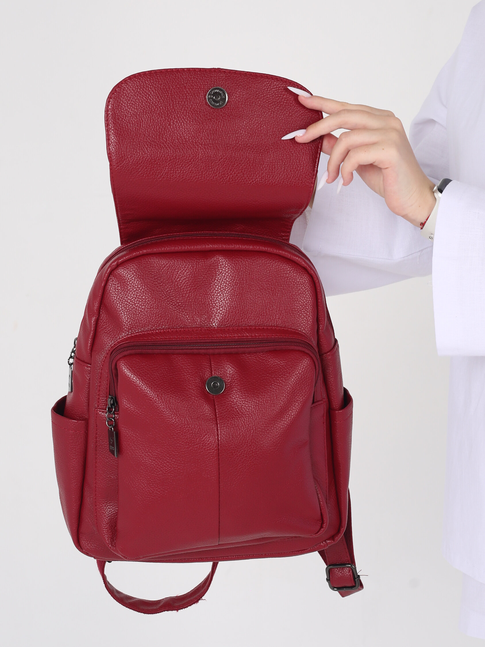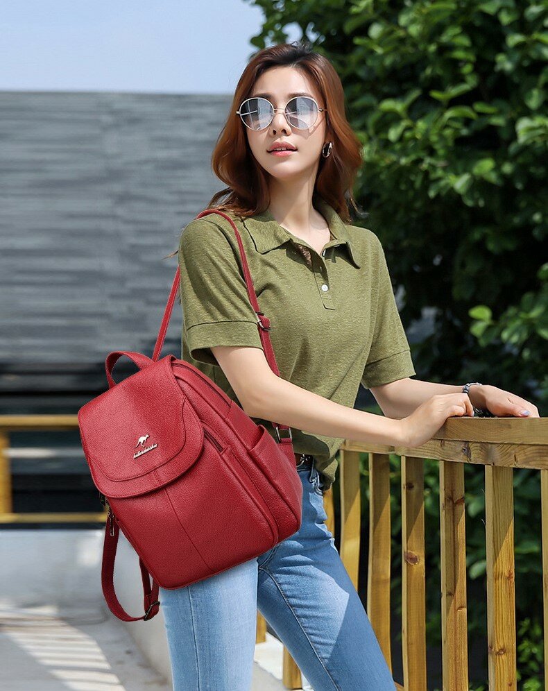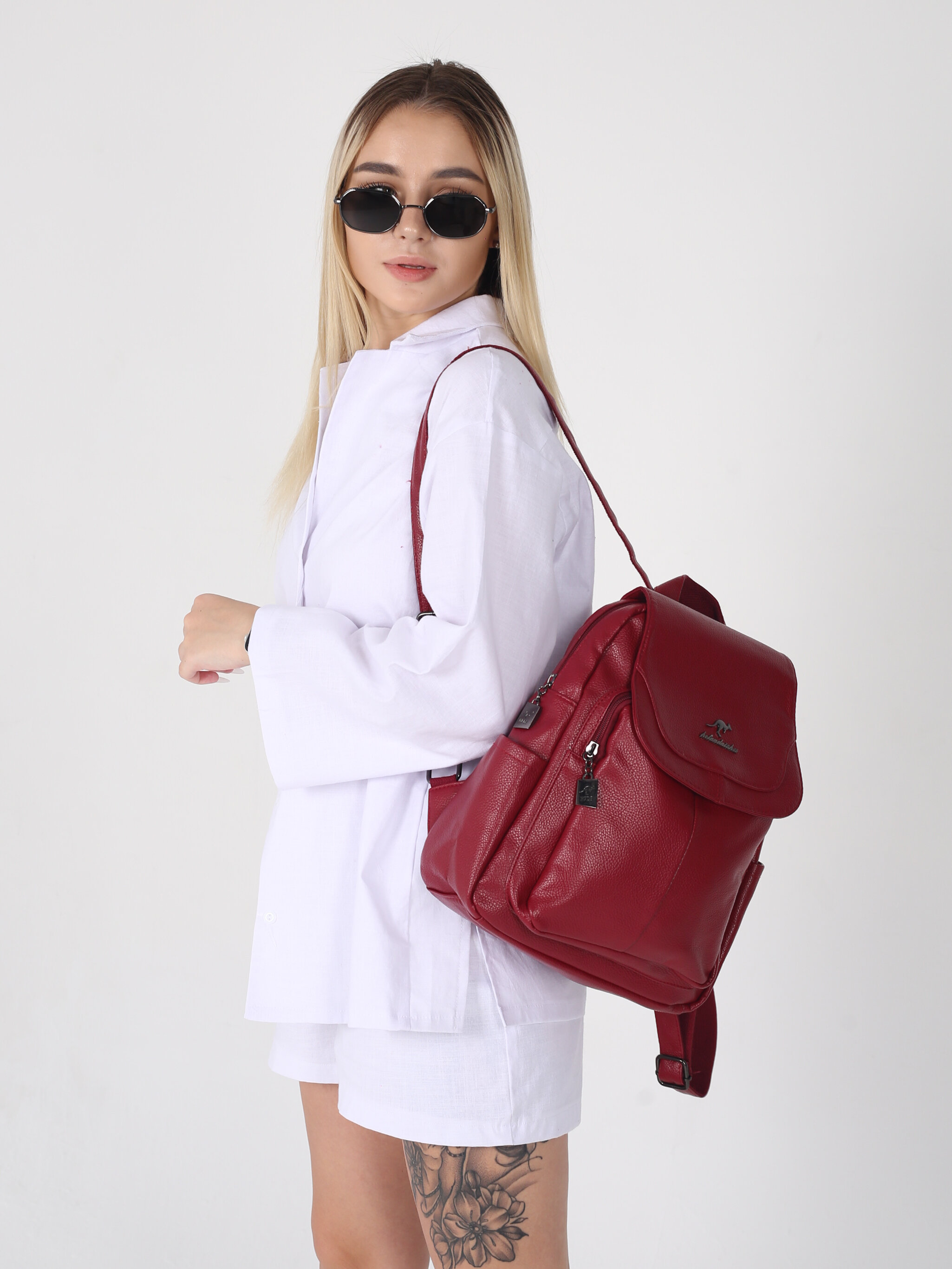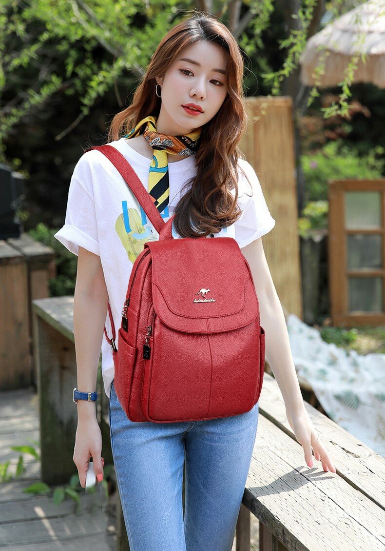 Рюкзак женский кожаный, красный