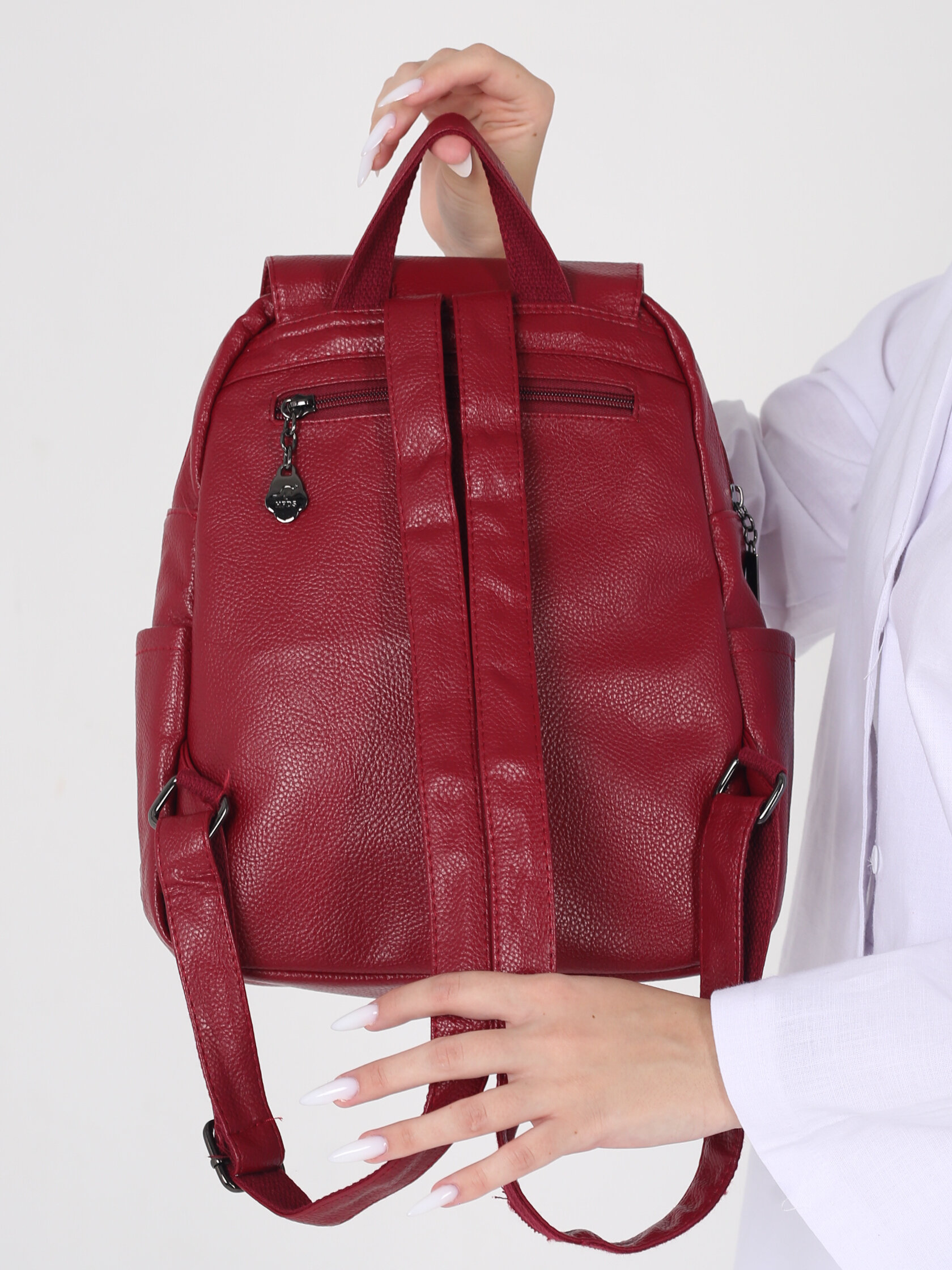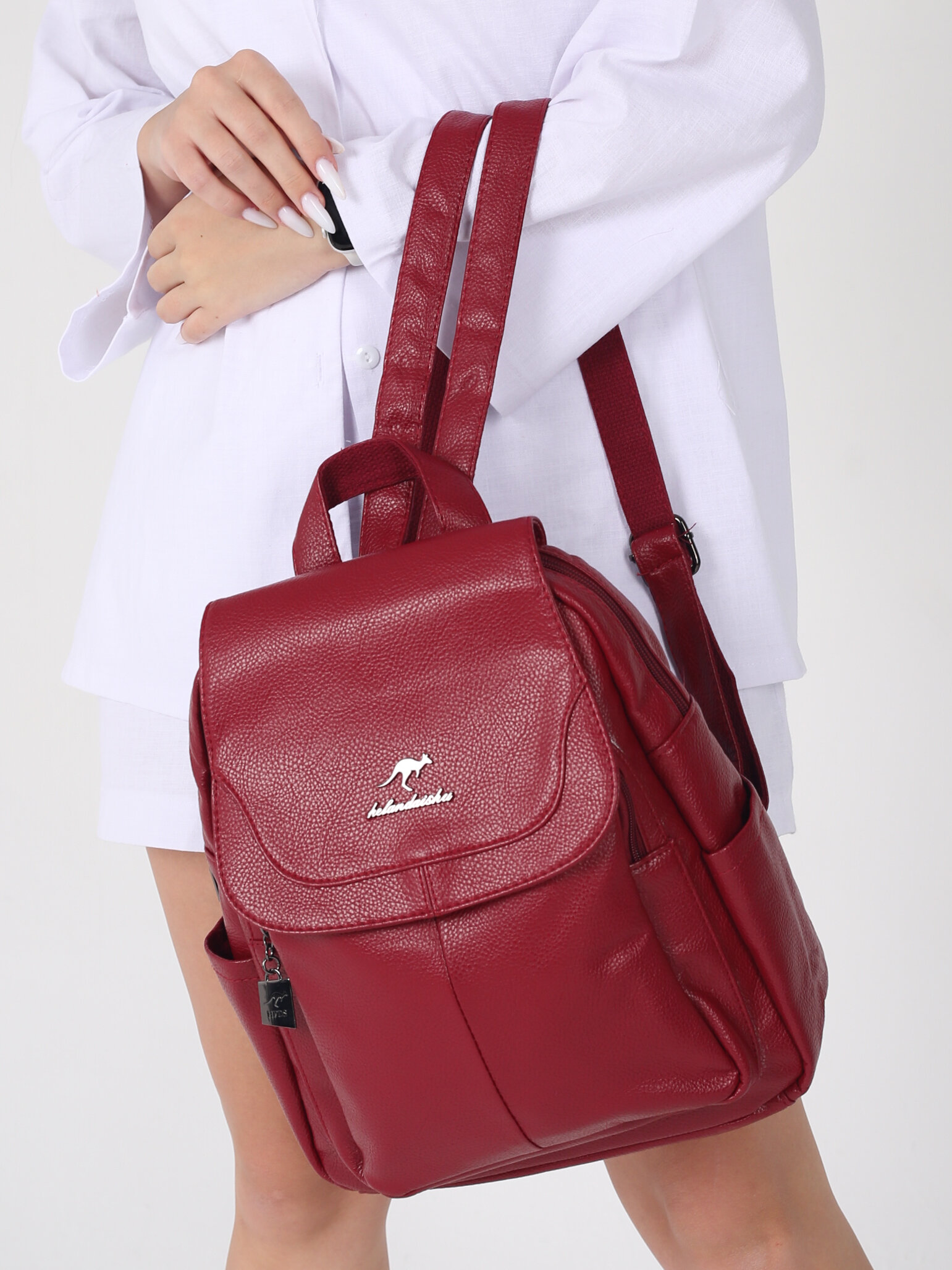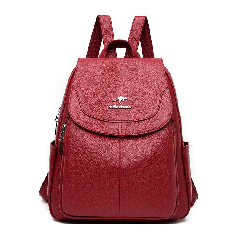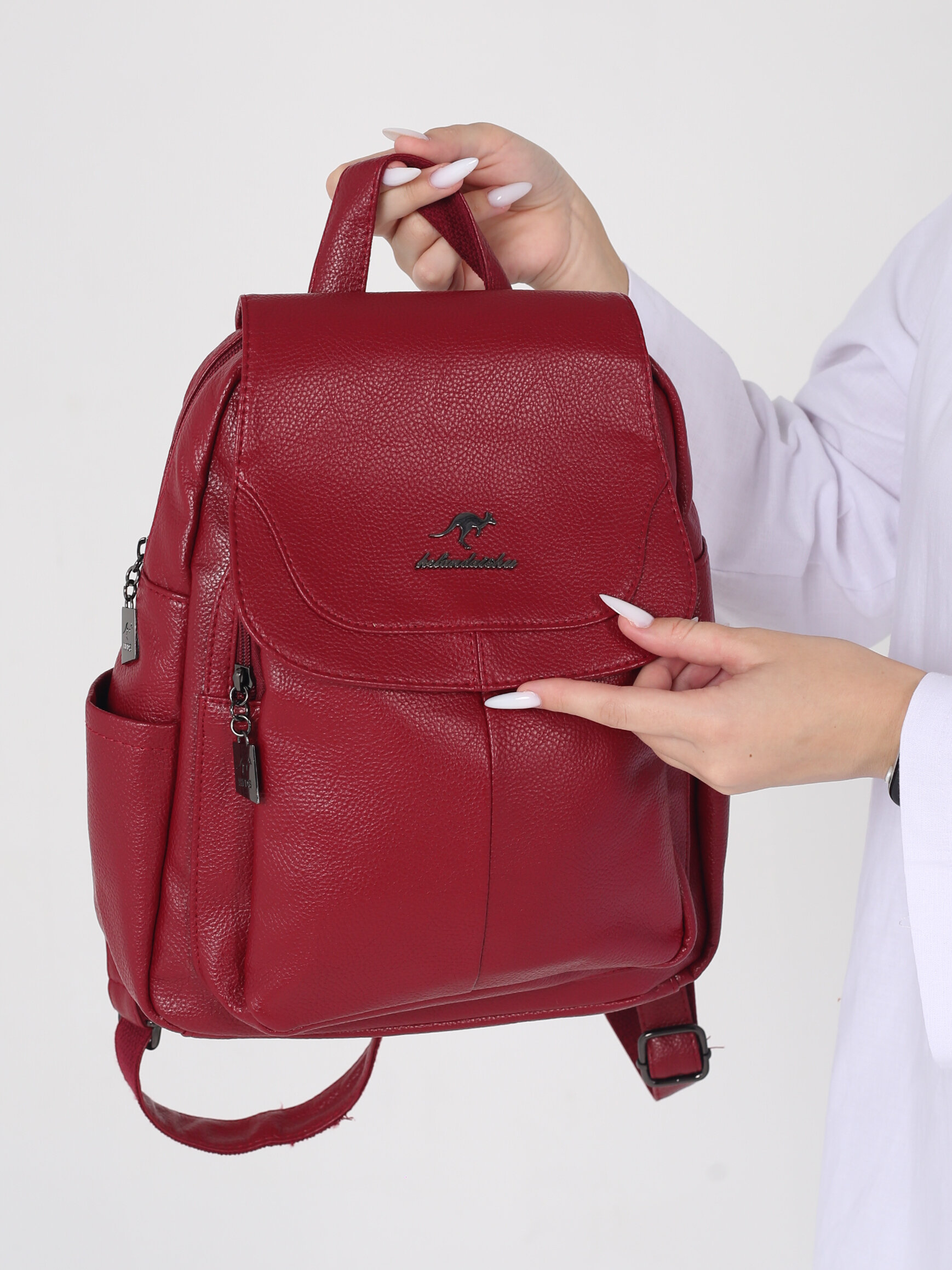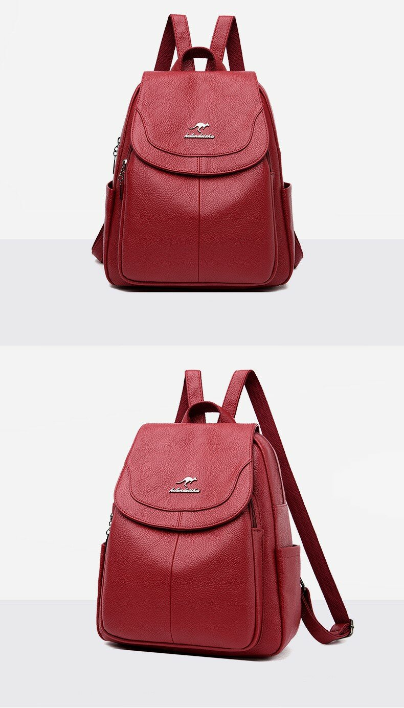 Рюкзак женский кожаный, красный