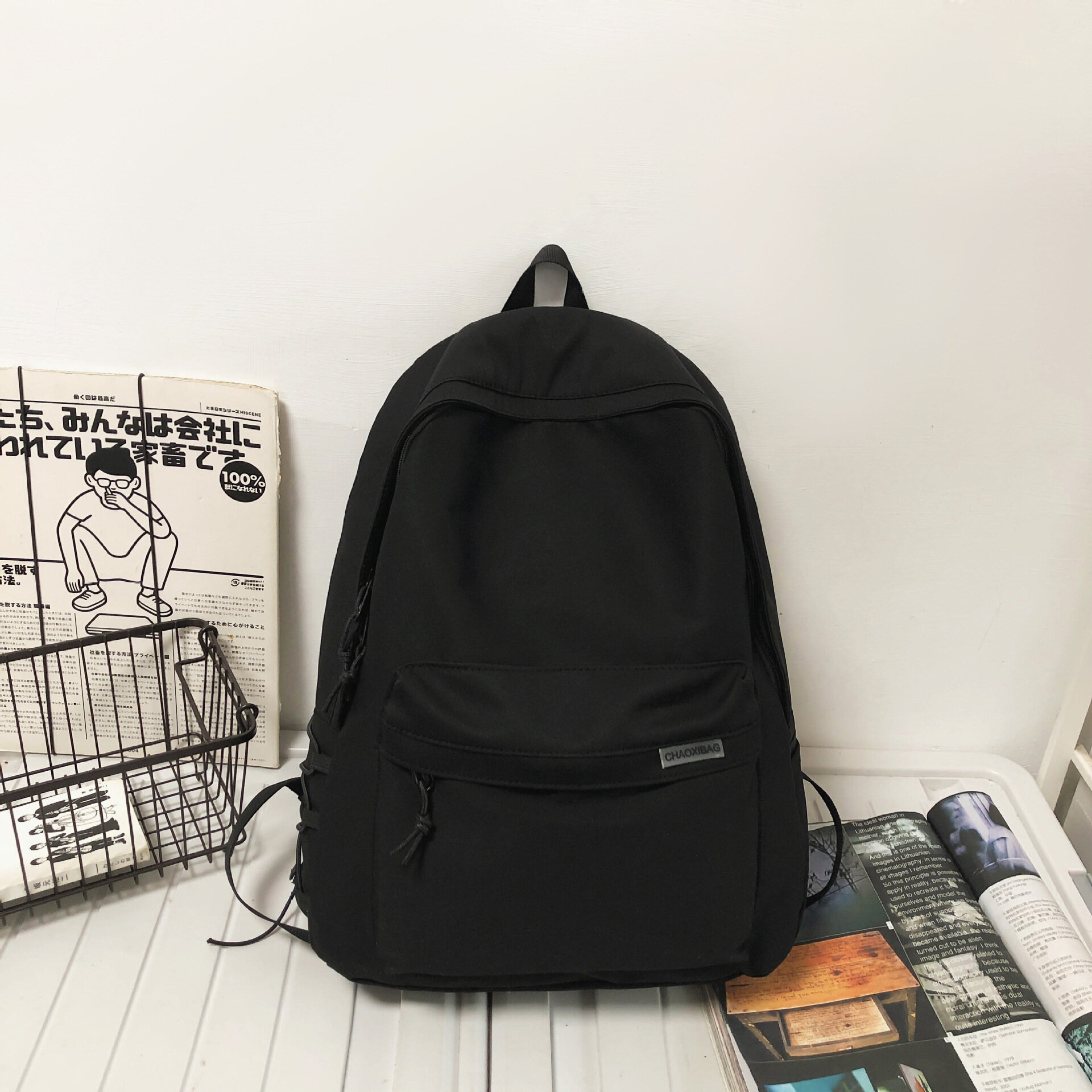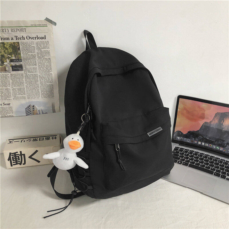 Рюкзак женский мужской городской школьный без брелка, черный