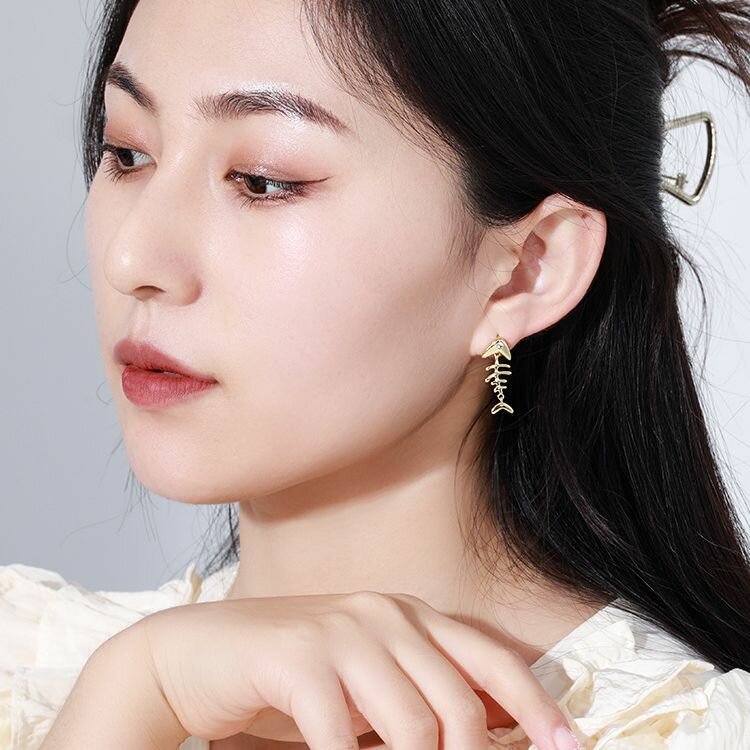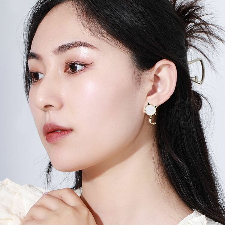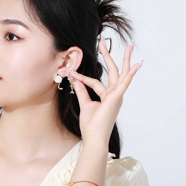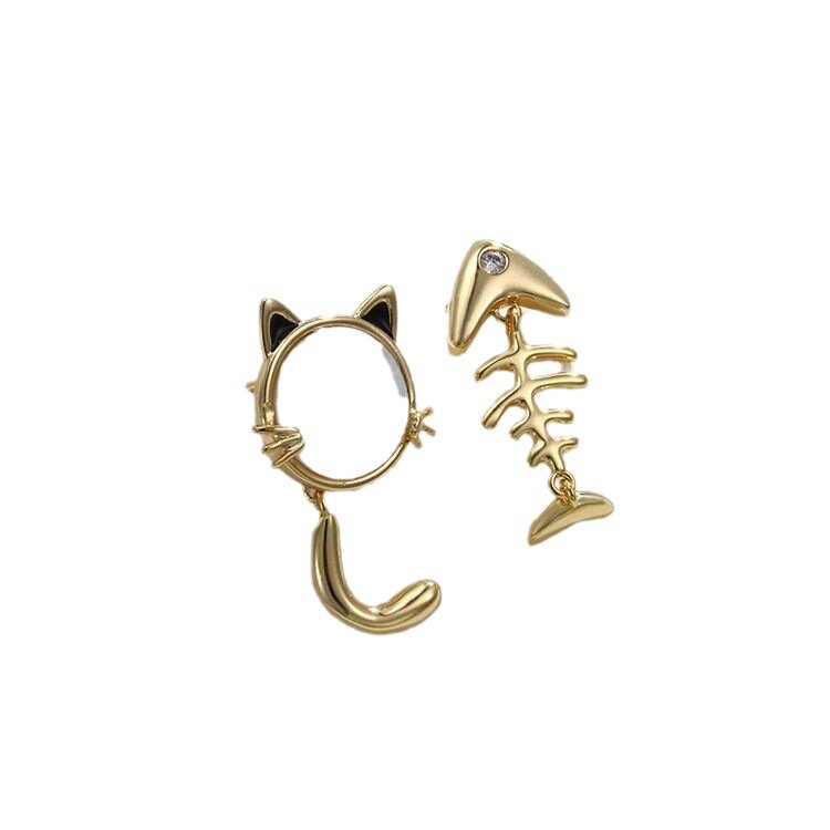 Серьги сережки ассиметричные бижутерия, Кошка и рыбка