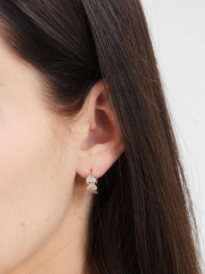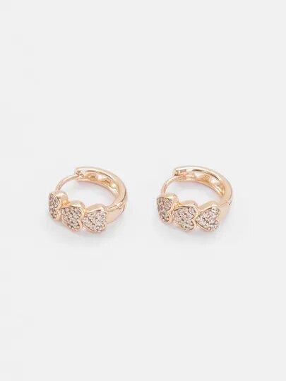 Серьги сережки кольца с камешками бижутерия, сердце 3, золото