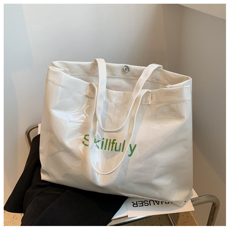 Сумка шоппер на тканевой основе снаружи оснащена эластичной прозрачной пленкой. Благодаря своей прочной ткани эта универсальная сумочка будет служить долго и надежно. Она складывается, что позволяет легко хранить ее где угодно без лишних помех. Сумка очень вместительная и может легко вместить все необходимые вам вещи при походе в магазин, на рынок, путешествии или на работе.