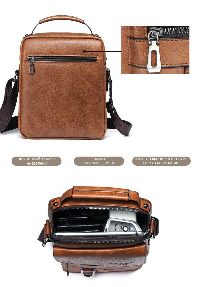 Сумка мужская через плечо - это сочетание отличного качества, стиля и функциональности. Аккуратный крой, ровность строчки и надёжность каждого элемента являются неоспоримыми преимуществами этой модели. Мужская сумка производится из эко кожи премиум качества, отличается мягкостью и приятна на ощупь. Мужская сумочка из кожи имеет основное отделение с 1 карманом на молнии и 1 карманом без молнии, а также 2 небольших передних и 1 внутренний карман. Планшет небольшого размера, но в то же время позволяет вместить все самое необходимое, документы, телефон, ключи и кошелек. Прочный ремешок регулируется по длине. Легкую мини-сумку мессенджер удобно носить на плече, через плечо или в руке. Барсетка отлично сочетается с деловым, повседневным стилем. Подойдет на каждый день, учебу или в офис, так и на выход в ресторан и театр. Подчеркните свой образ модным стильным аксессуаром.