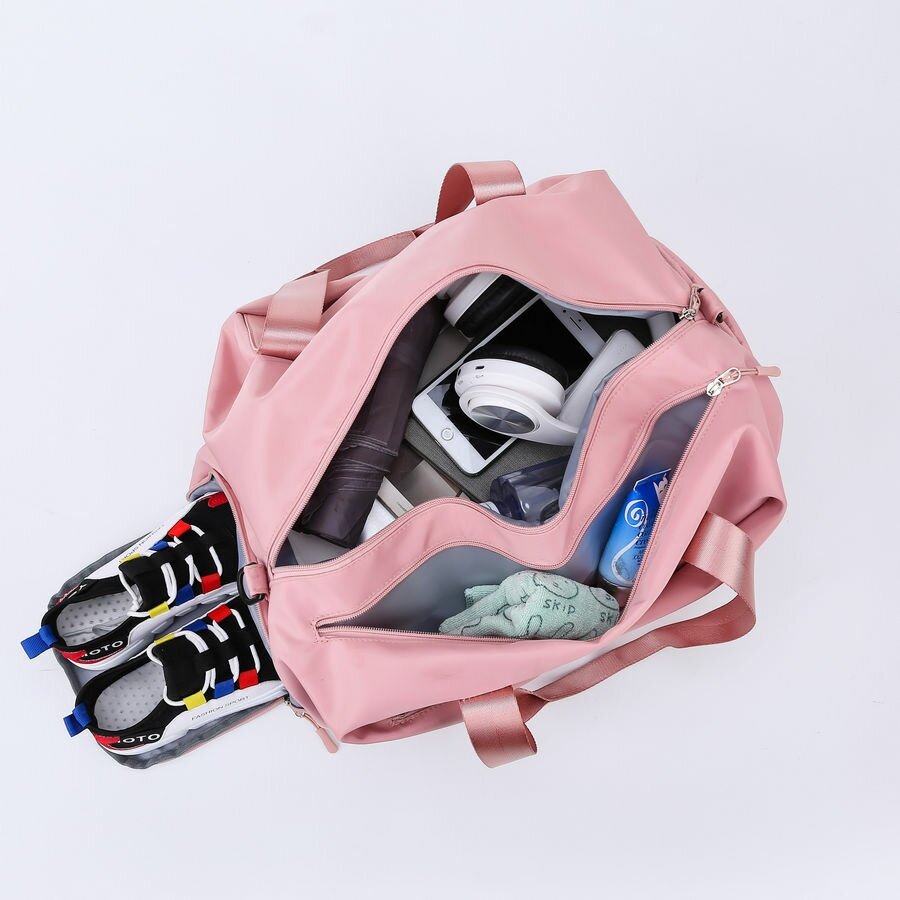 Спортивная сумка через плечо - одна из самых популярных и практичных моделей аксессуаров для спорта. Сумка спортивная женская для похода в тренажерный зал или фитнес оснащена удобными ручками и дополнительным ремнем, есть отсек для обуви, водонепроницаемое отделение для влажных вещей, внутри имеется небольшой карман для мелочи или документов. Сумка для фитнеса женская прекрасно сочетается не только со спортивной одеждой, но и с джинсами или брюками. Сумка женская для людей, ведущих здоровый образ жизни, предпочитающих комфорт, простоту и красоту в одном изделии. Можно использовать и как дорожная сумка - ручная кладь, шоппер или сумка для мамы, для коляски, для беременных сумка в роддом - поместится все необходимое. Сумка для выезда на природу или в бассейн, в баню, под спорт инвентарь. Сумки женские через плечо представлены в нескольких цветовых вариантах.