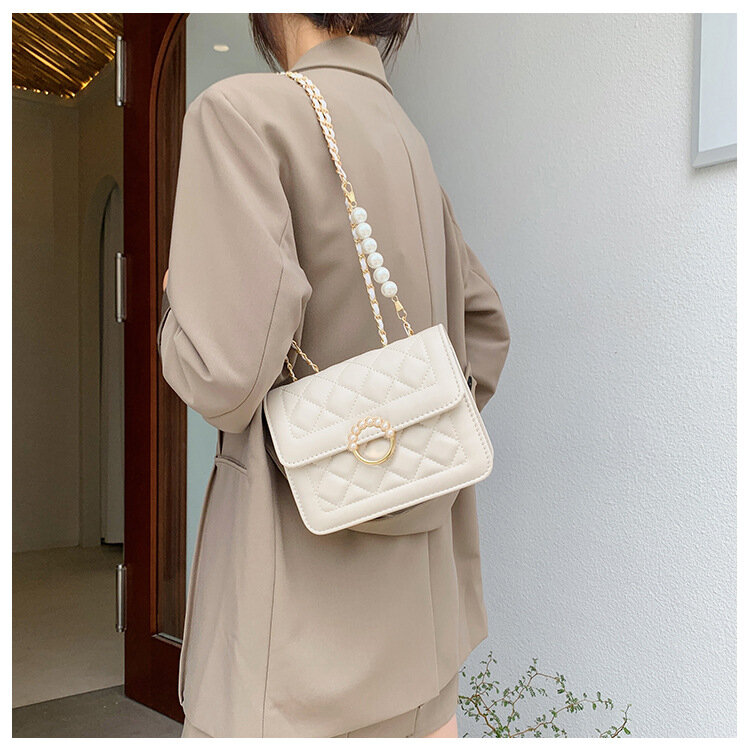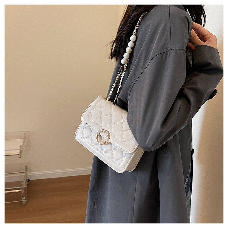 Женская сумка через плечо из новой коллекции лето 2023. Маленькая сумочка выполнена из эко-кожи, не отличимой от натуральной кожи. Ремешок цепочка кросс-боди позволяет носить сумку так, как вам удобно. Удобная и практичная, компактная и в тоже время очень вместительная сумка. Идеально подойдет как под деловой стиль, так и под вечерний образ. Современный, актуальный дизайн. Универсальный ремешок-цепочка, можно носить как на плече, через плечо или в руке, трансформировав в 2 ручки, детали сумочки украшены белым жемчугом, что привлекает внимание ярким элементом. Хорошее качество материалов и аккуратный пошив. Приятна на ощупь и радует глаз.