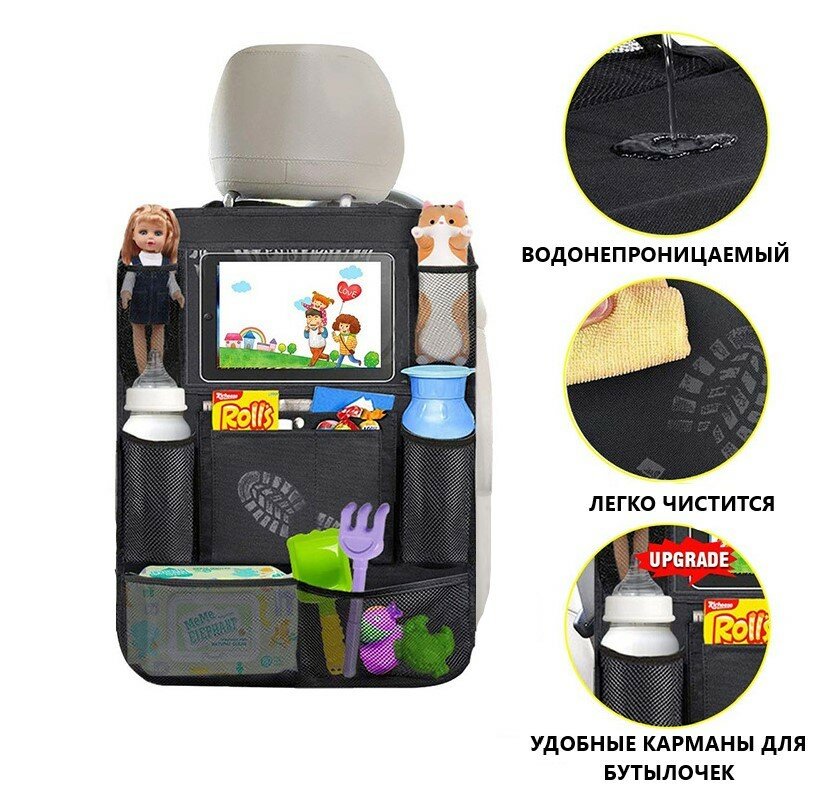 Накидка на сиденье автомобиля защитит сиденье от загрязнений и механических повреждений. Органайзер на сиденье автомобиля - это не только защита от детей, но и сохранение салона в первозданном виде. Накидка на кресло снабжёна двумя глубокими карманами, удобными креплениями на регулируемых ремешках. Также, накидка на сиденье выдержана в универсальном, сдержанном стиле. Благодаря форме и классическому цвету, чехол подойдёт для любой марки авто и дизайна салона. Не требует дополнительного ухода, легко чистится влажной тряпкой или салфеткой. Отличается высокой износостойкостью и прочностью.